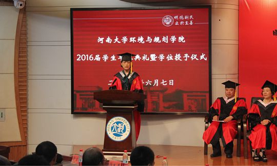 铁塔下的校园留给我们太多不舍和深深眷恋,不论走到哪里,河大是我们永远的家!“嵩岳苍苍河水泱泱”,全场齐声响起了《beat365 手机版官方网站校歌》。至此,环境与规划学院2016届本科生毕业典礼暨学位授予仪式圆满落幕。
