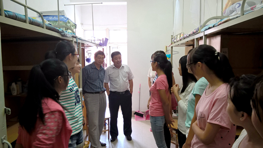其间,每到一个宿舍,老师们都会亲切地问起同学们来自哪里、在这吃的、住的还习惯吗,晚上热吗。对于新生提出的问题,老师们也都详细地解答了新生的疑惑。