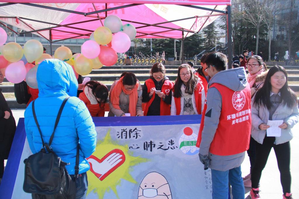 12月5日是第32个国际志愿者日。环境与规划学院认真领悟党的十九大报告中对生态文明建设的重要阐释,紧扣时代发展、发扬志愿精神、践行文明行为,举办了以“破解‘十面霾伏’、消除‘心肺之痛’”为主题的志愿服务系列活动。本次活动由学院团委主办、院青年志愿者协会、绿色联盟协会、书法协会承办。