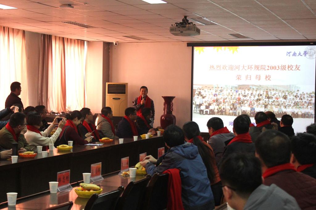 “十年匆匆,时光荏苒”,座谈会在一段“快闪文字视频”震撼开场。首先,环境与规划学院院长秦耀辰院长致辞。他代表学院对校友们的返校表示热烈的欢迎,对校友们长期以来支持学院的建设和发展表示衷心感谢。随后,他详细介绍了学院在学科建设、人才培养、师资队伍、科学研究、国际合作交流、实验室建设和实践教学等方面取得的丰硕成果。校友们对学院发展取得的显著成效表示祝贺和兴奋,掌声连连。接着校友们对自身发展作了简要介绍,为老师们送上新一年的祝福。地理信息系统班班长朱开印表示我们的成长离不开老师的培养,离不开学院的鼓励,有机会一定常回母校看一看,并祝福老师身体健康,桃李满天下。最后,2007届年级团支书田丽代表全体同学为学院捐助奖学金,鼓励学弟学妹好好学习,为社会贡献力量。