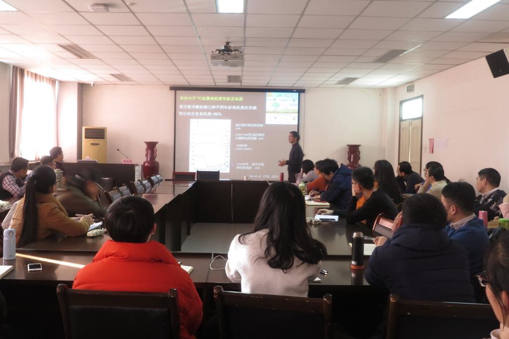 谢树成教授首先介绍了古气候重建的生物地球化学方法,讲解了最易保存和具有比较明确的气候与环境指示意义的植物脂类的特点,并介绍了一些植物脂类在重建古气候的应用实例。谢树成教授接着介绍了微生物脂类的特点。他指出,微生物脂类是地球生物发展历史的唯一生物见证者,因此微生物地学成为了地球科学领域一个重要领域。最后,谢树成介绍了他自己的团队发展的一套可以用来重建干旱-洪涝历史的土壤微生物脂类指标,并展示了两个应用实例。