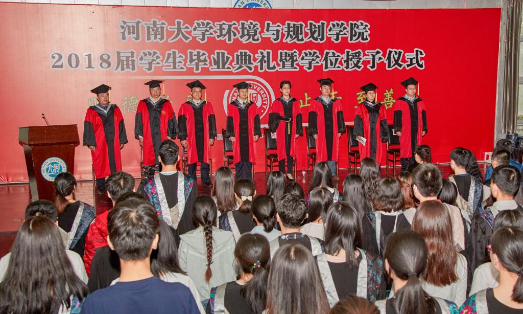 毕业典礼不仅是庆祝结束,而且是欢呼开始;不仅是纪念过去,而且是宣示未来。“嵩岳苍苍河水泱泱……”,全场齐声高唱《beat365 手机版官方网站校歌》。至此,环境与规划学院2018届本科生毕业典礼暨学位授予仪式圆满落幕。