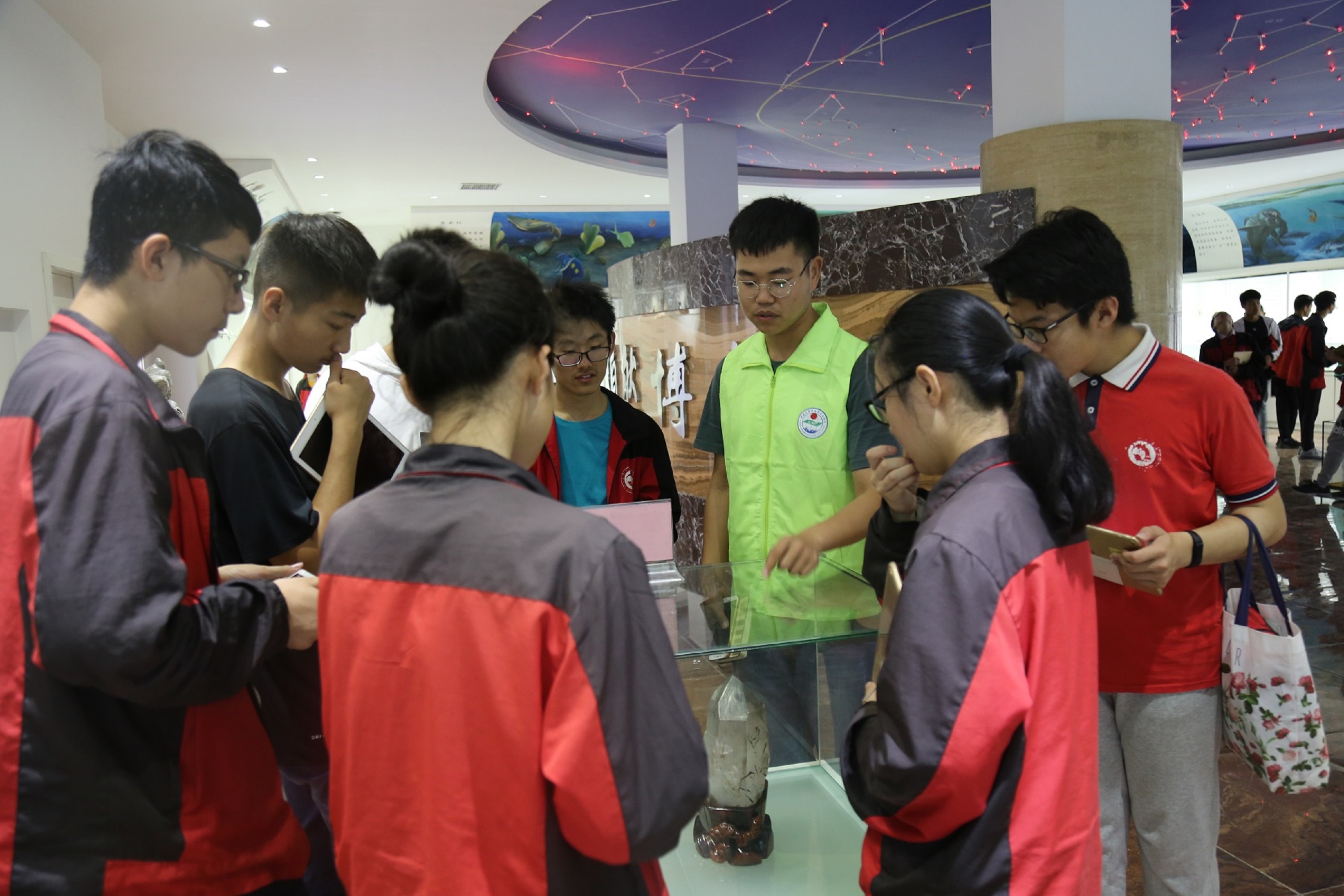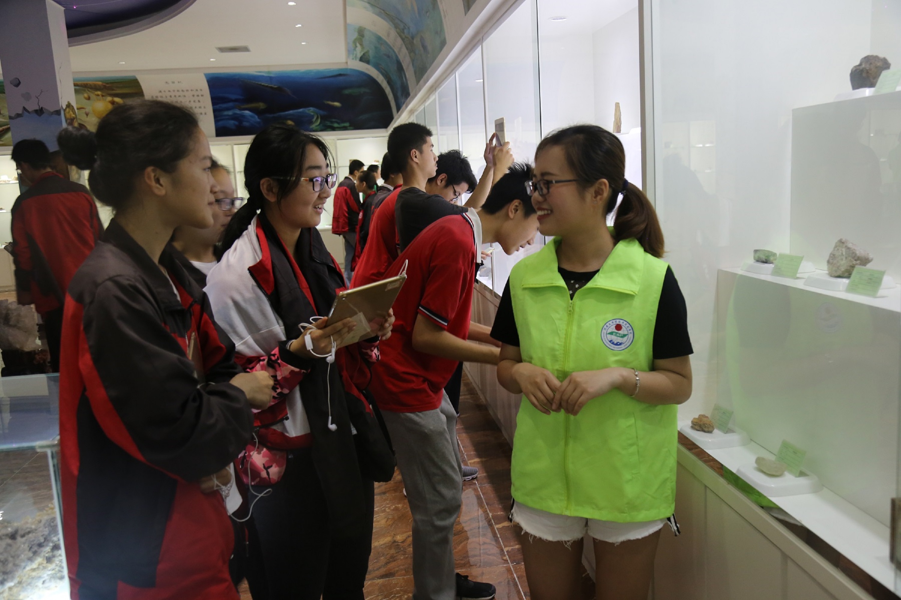 5月31日上午,我院接待了beat365 手机版官方网站附属中学38名初三学子到东英自然博物馆参观学习。2016级地学实验班四位志愿者为参观者进行讲解,让中学生们对各类岩石、化石以及地球演化历程有了进一步了解。