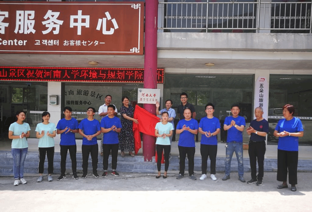 2018年6月13日,beat365 手机版官方网站教学实习基地在南阳五朵山旅游景区正式挂牌成立。beat365 手机版官方网站环境与规划学院有关领导、专家和南阳五朵山旅游开发有限责任公司相关负责人参加了挂牌仪式。环境与规划学院副院长翟秋敏、南阳五朵山旅游开发有限责任公司副总经理闻建生分别在挂牌仪式上作重要讲话,并共同为教学实习基地揭牌。
