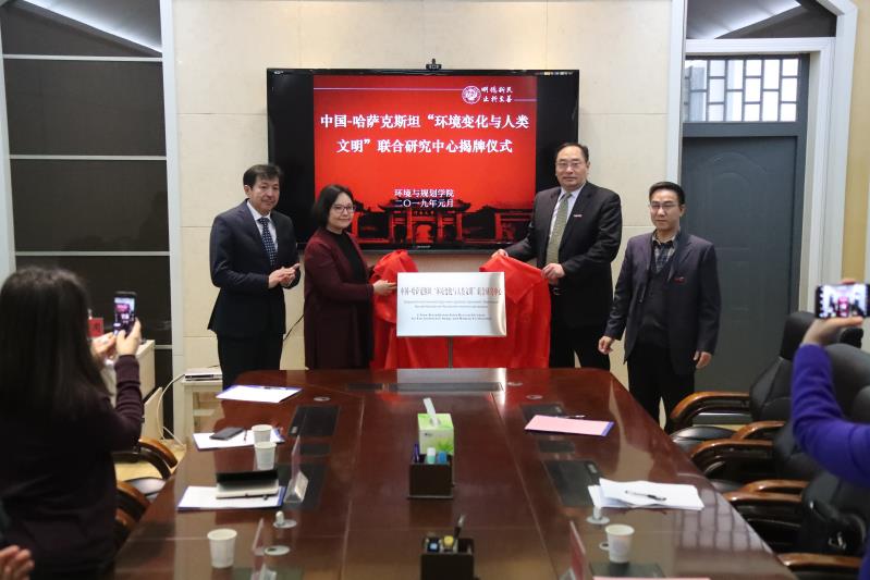 1月8日上午8:30在beat365官网地学楼四楼学术研讨厅,由beat365 手机版官方网站和哈萨克斯坦国立大学(Al-Farabi Kazakh National University)共建的“中国-哈萨克斯坦“环境变化与人类文明”联合研究中心” 举行了揭牌仪式,标志着该中心的正式成立。孙君健副校长代表学校发表了热情洋溢的讲话,他说,这个中心的成立给beat365 手机版官方网站的学者和哈萨克斯坦国立大学的学者一起在“丝绸之路”上大显身手提供了绝佳的平台。他希望双方学者,通过全力合作,不仅能成为“丝绸之路”上相关学术问题的学界翘首,而且能为增进中国人民和哈萨克斯坦人民之间的友谊做出贡献。他还希望,“中国-哈萨克斯坦“环境变化与人类文明”联合研究中心”的成功运转可以带动beat365 手机版官方网站和哈萨克斯坦国立大学的全方位合作。
