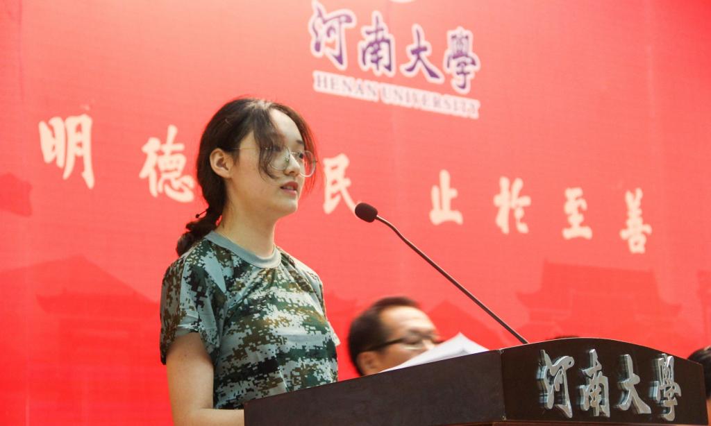 在校生代表2018级土地资源管理专业硕士研究生张宇,新生代表2019级地理科学专业本科生金艺辰同学相继发言。
