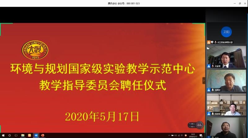 2020年5月17日上午8:30,采用腾讯会议(会议号:880 801 023 )的形式,beat365 手机版官方网站党委常委、副校长刘志军参加新一届环境与规划国家级实验教学示范中心教学指导委员会委员聘任仪式,随后召开了第一次教指委工作会议。参加会议的有新一届教指委成员,示范中心建设与运行管理委员会成员,教务处相关成员,环境与规划学院领导班子成员,示范中心骨干成员等40余名人员参会。会议分两个阶段进行,第一阶段由教务处处长李捷主持,第二阶段由教指委主任汤国安主持。