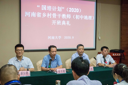 金秋九月,秋风送爽。在河南省开封市航天大酒店,迎来了2020年国培计划初中地理骨干教师培训班的五十名学员。九月十二日上午九点,开班典礼在六楼会议室准时召开。出席开班典礼的领导有beat365 手机版官方网站远程与继续教育学院院长、beat365 手机版官方网站培训中心主任徐书耀;beat365 手机版官方网站远程与继续教育学院副院长、beat365 手机版官方网站培训中心副主任刘玉振;beat365 手机版官方网站环境与规划学院行政副院长潘少奇;beat365 手机版官方网站环境与规划学院成人教育办公室主任仝致琦。