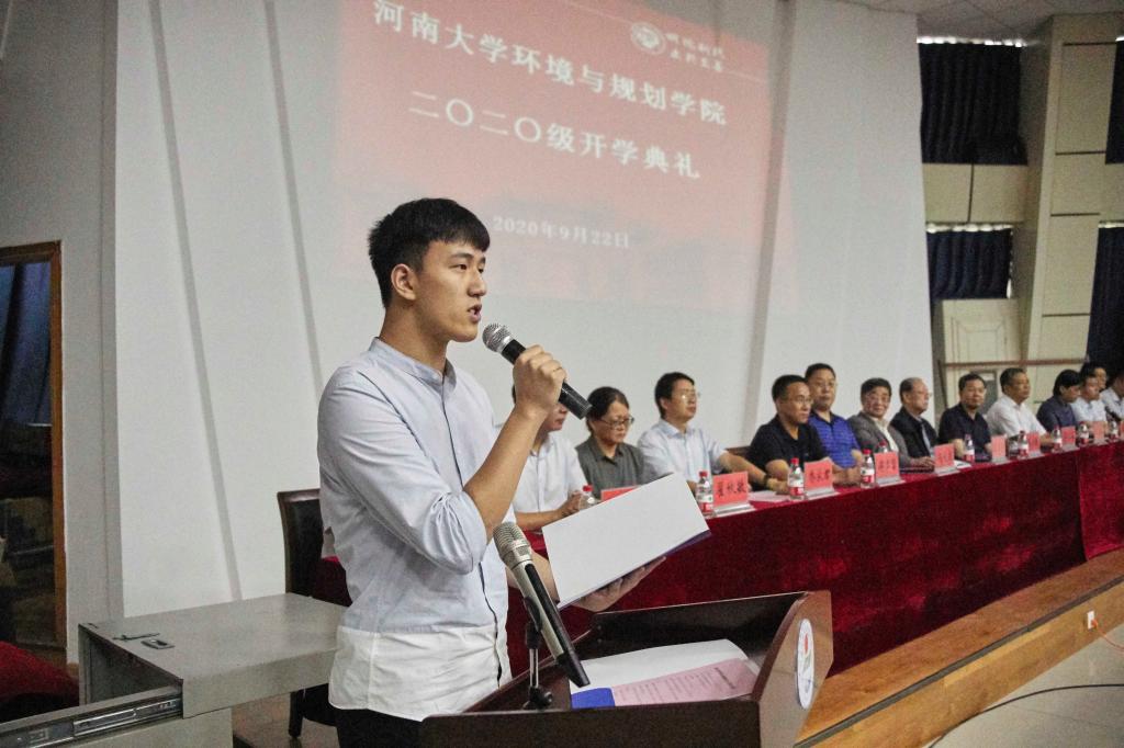 在校生代表2018级人文地理与城乡规划专业本科生蒋奉汲,新生代表2020级地理科学类专业本科生张筱昀相继发言。