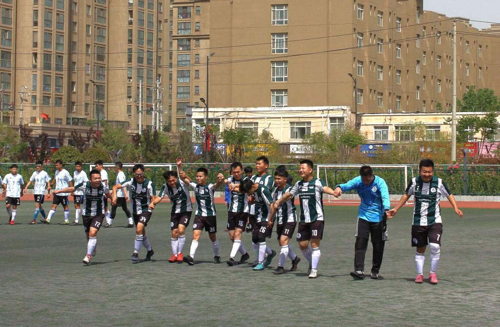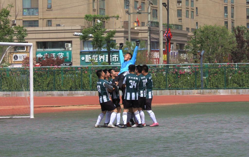 5月7日中午,“河大杯”超级组淘汰赛关键战拉开序幕,环境与规划学院男足于beat365 手机版官方网站金明校区东操场迎战国际教育学院,我院以比分4:3摘得比赛胜利。