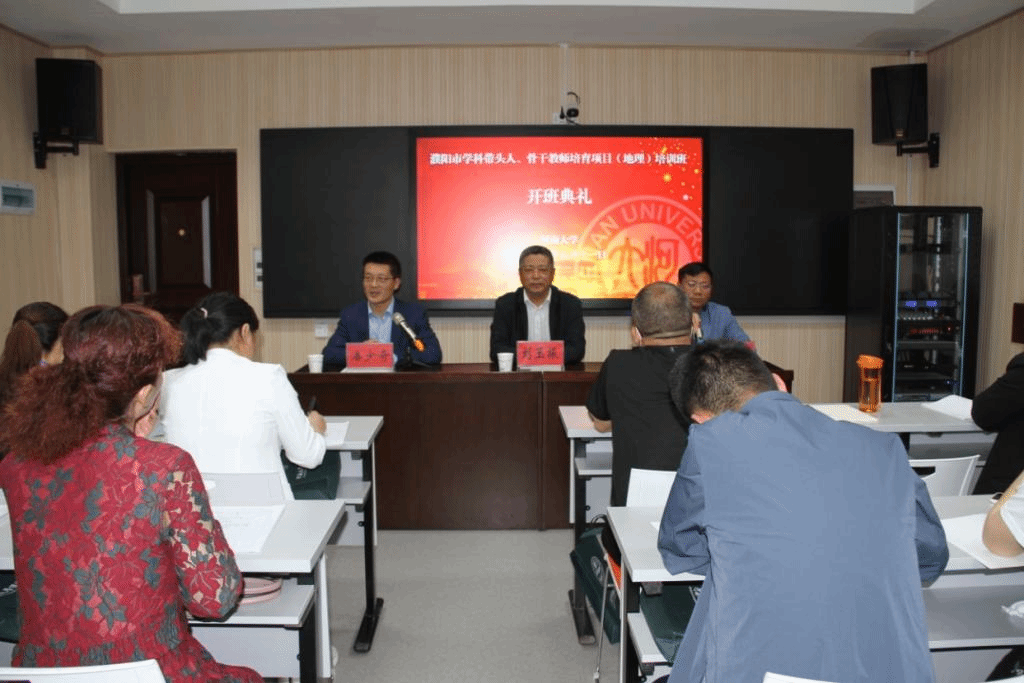 2021年5月11日上午8:30,“濮阳市学科带头人、骨干教师培育项目(地理)培训班”的开班典礼在beat365 手机版官方网站金明校区1号教学楼101教室准时召开。出席开班典礼的领导有beat365 手机版官方网站远程与继续教育学院副院长刘玉振教授;beat365 手机版官方网站环境与规划学院行政副院长潘少奇博士;beat365 手机版官方网站环境与规划学院成人教育办公室主任仝致琦博士。