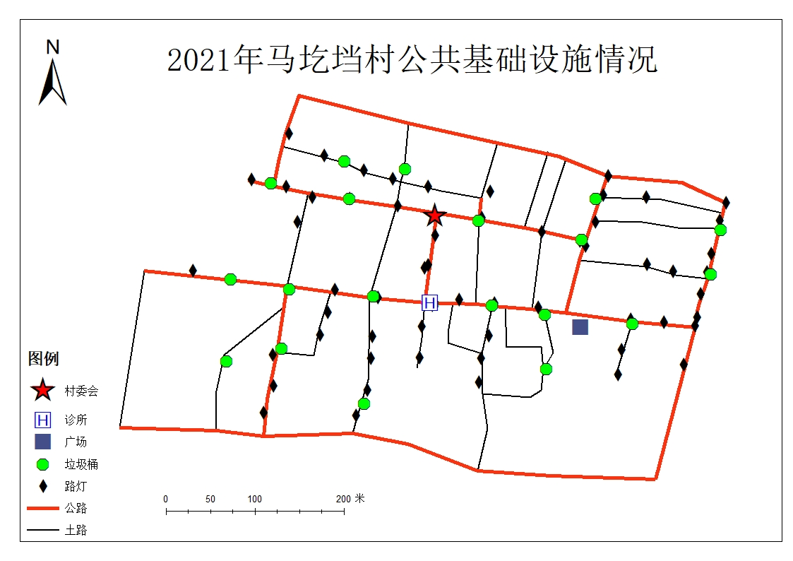 为了更加清晰地展示出乡村振兴的变化,团队成员顶着烈日走遍了全村的每一个角落,将村中所有道路信息和路灯等基础设施的信息手动录入到GIS中,结合地理学专业知识,形成了两幅矢量化地图,通过对乡村振兴前后两张基础设施矢量化地图的对比表现出该村在乡村振兴中的变化。团队成员在此过程中增强了学以致用的能力,提升了自身的专业荣誉感。