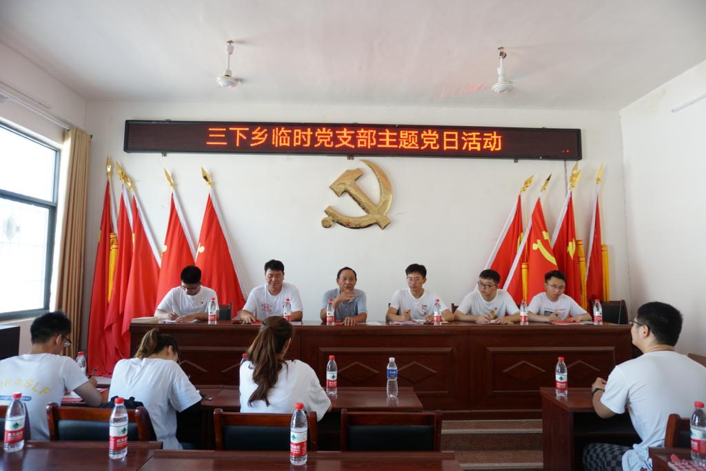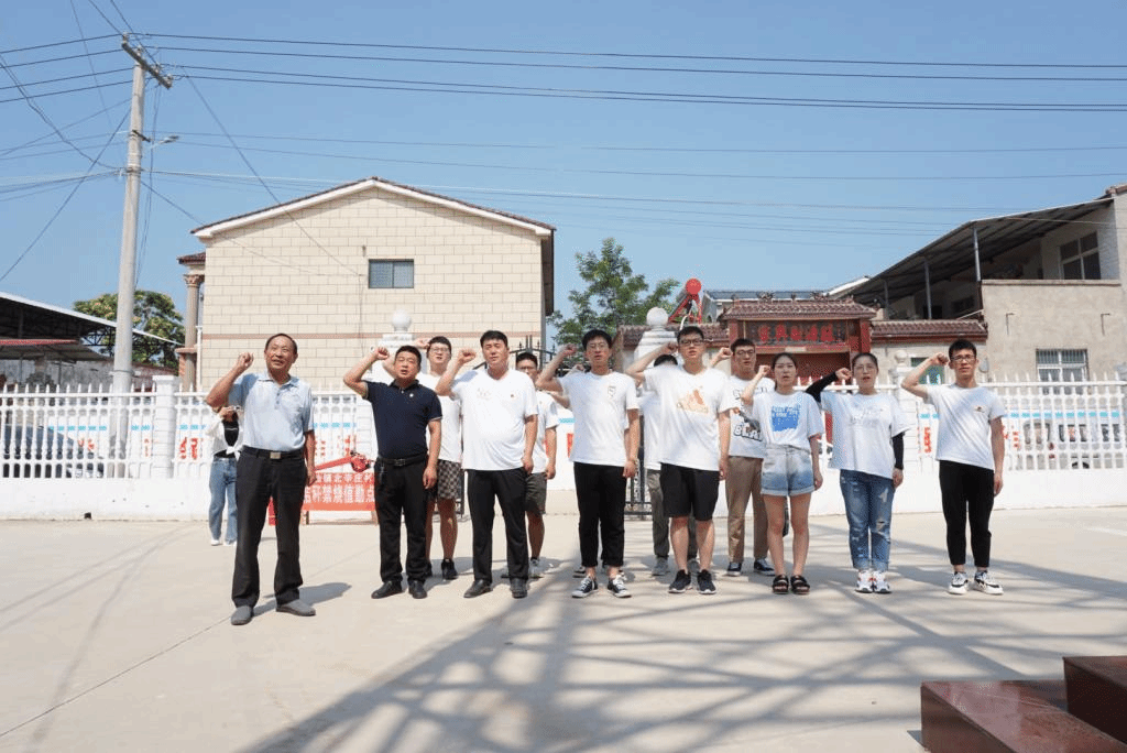 调研团成立暑期社会实践三下乡临时党支部,由支部书记邹泽铎带领调研团成员与北辛庄村三委成员一起开展主题党日活动。会上首先由双方代表介绍支部建设,近期党史学习教育等情况,然后由穆书记带领双方代表在朱仙镇北辛庄村宣誓墙进行入党宣誓。在会议交流中由北辛庄老支书给与会人员分享多年基层工作中的经验。调研团成员认真学习并询问北辛庄村的产业发展和脱贫攻坚等问题。随后,穆书记带领调研团成员参观北辛庄村。穆书记讲述村里的发展变化,成员们深刻感受到在党的领导下,社会主义新农村建设给人民幸福生活带来的巨大改变。