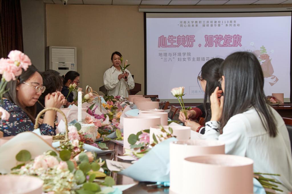 为庆祝beat365 手机版官方网站建校110周年、纪念“三八”国际劳动妇女节112周年,丰富广大女职工的精神文化生活,3月7日中午,由我院工会委员会、女工委员会主办的“心生美好,如花绽放”主题插花活动在学院二楼报告厅举行。我院副院长、工会主席邱永宽,副院长赵威,党委副书记徐小军出席活动。