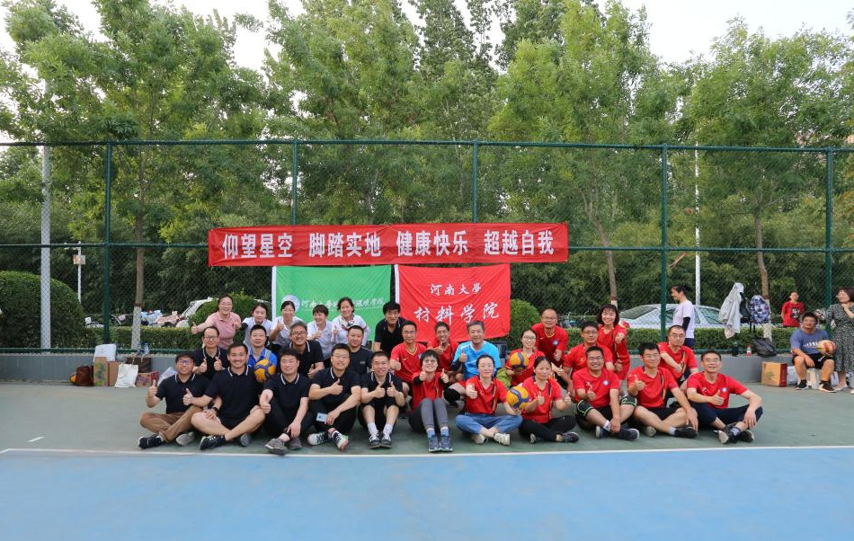 值得一提的是,排球场外,两院院旗并排而立,院旗上方的横幅是两个学院共同制定的宣传口号:“仰望星空 脚踏实地 健康快乐 超越自我”。赛前,两支队伍在横幅下合影,并一起热身,赛后,两队联合进行了复盘,比起以往,今天的赛场上少了些许紧张,处处洋溢着欢快和谐的氛围。副校长、beat365 手机版官方网站院长傅声雷教授与材料学院院长杜祖亮教授是beat365 手机版官方网站教授足球队双队长,教授足球队中的许多队员都来自这两个学院,两院交流十分密切,情谊深厚。今天,他们将足球场的情谊延伸到了排球场上,为现场观众带来了一场充满友谊温情的对抗赛!