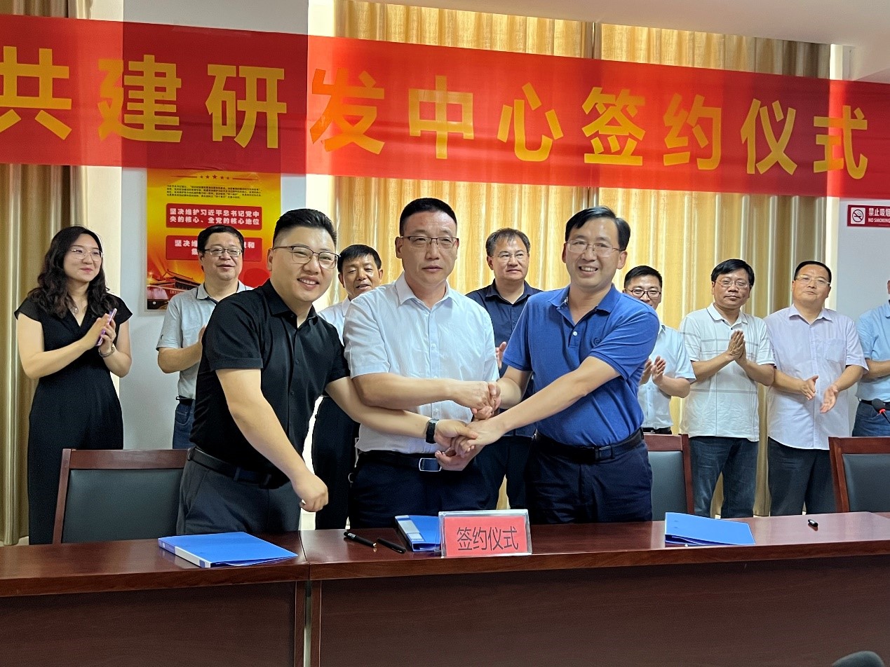 最后,我院副院长邱永宽、开封市农业农村局蔬菜科学研究所所长焦书升、河南汴蓝环境保护检测服务有限公司总经理王万里分别作为三方代表签署共建协议,签约仪式在一片欢快愉悦的掌声中圆满落下帷幕。