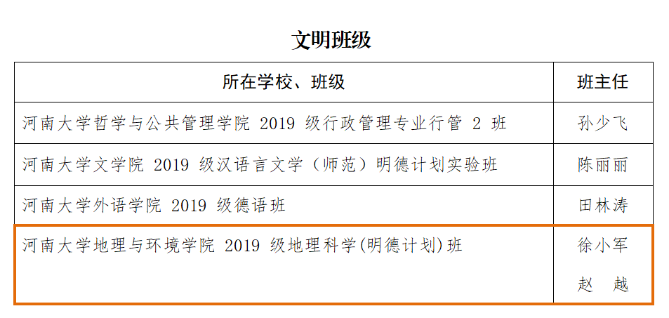 根据《中共河南省委高校工委 河南省教育厅关于公布2022年度全省教育系统“两创两争”活动先进集体和先进个人评选结果的通知》,beat365 手机版官方网站在2022年度河南省教育系统“两创两争”活动先进集体和先进个人评选活动中斩获佳绩,其中我院师生收获颇丰,由党委副书记徐小军和团委副书记、2019级辅导员赵越担任班主任的beat365 手机版官方网站2019级地理科学(明德计划)班荣获文明班级称号;由赵越指导的“绿色联盟协会”荣获文明社团称号。