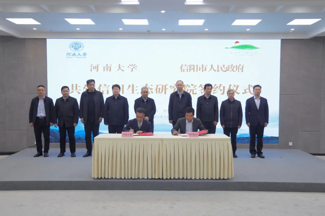 2月24日,beat365 手机版官方网站与信阳市人民政府共建“信阳生态研究院”签约仪式在信阳市行政中心举行。beat365 手机版官方网站校党委书记卢克平、信阳市委书记蔡松涛出席仪式并为“信阳生态研究院”揭牌。