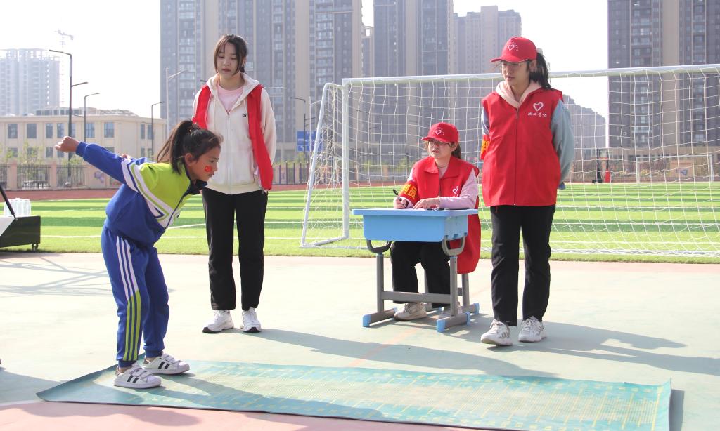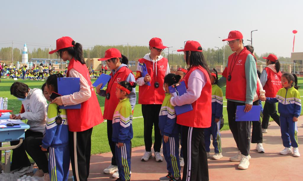 3月31日,为深入发展我院同河大附小金明校区全方位、多层次的友好合作,在学院团委书记赵越的带领下,学院志愿者们前往协助beat365 手机版官方网站附属小学金明校区举办“阳光运动,悦享童年”第一届春季运动会。共有30余名志愿者以裁判身份参与此次活动,协助附小教师开展运动会的各项比赛。