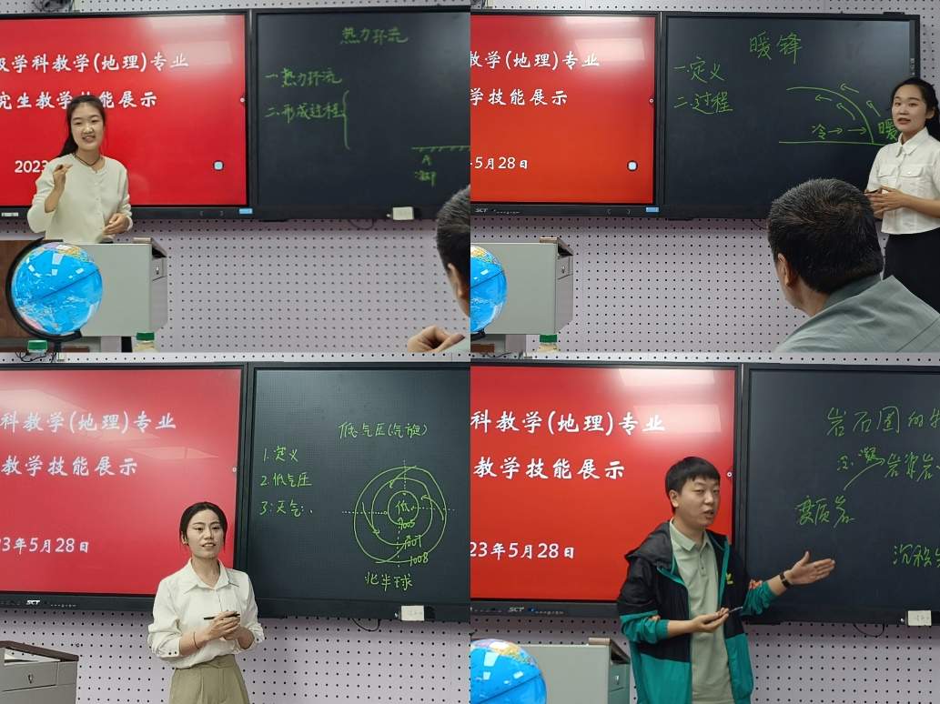 为提高学科教学(地理)专业研究生的教学能力和综合素养,我院于2023年5月28日在学院二楼实训室举办了学科教学(地理)专业研究生第五届教学技能大赛,2022级学科教学(地理)专业全体研究生参赛。本次活动由学科带头人张广花老师主持,开封市第二十五高级中学夏继宏老师、beat365 手机版官方网站附属中学贾海军老师、丁恒老师以及研二四位优秀学生代表作为此次大赛的评委。
