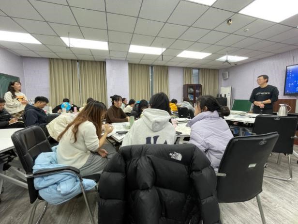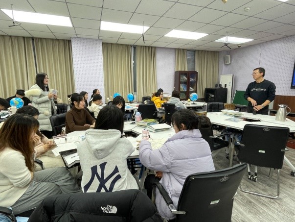 为坚定我院学科教学(地理)专业研究生的教师职业理想与职业信念,帮助学生树立正确的教师专业发展观,2023年12月27日下午,我院学科教学专业负责人张广花邀请beat365 手机版官方网站附属中学的丁恒老师在地学楼二楼实训室开展以“地理教师专业成长”为主题的座谈会,2023级学科教学(地理)专业全体研究生参加。
