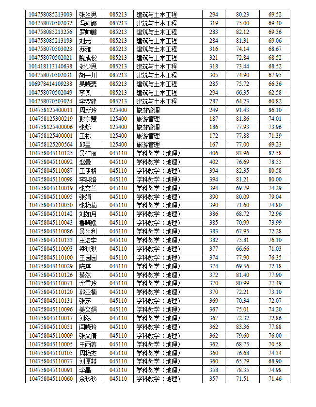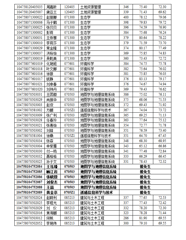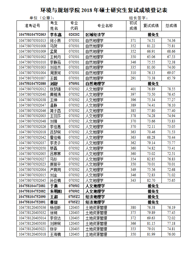 【公  示】环境与规划学院2018年硕士研究生复试成绩登记表