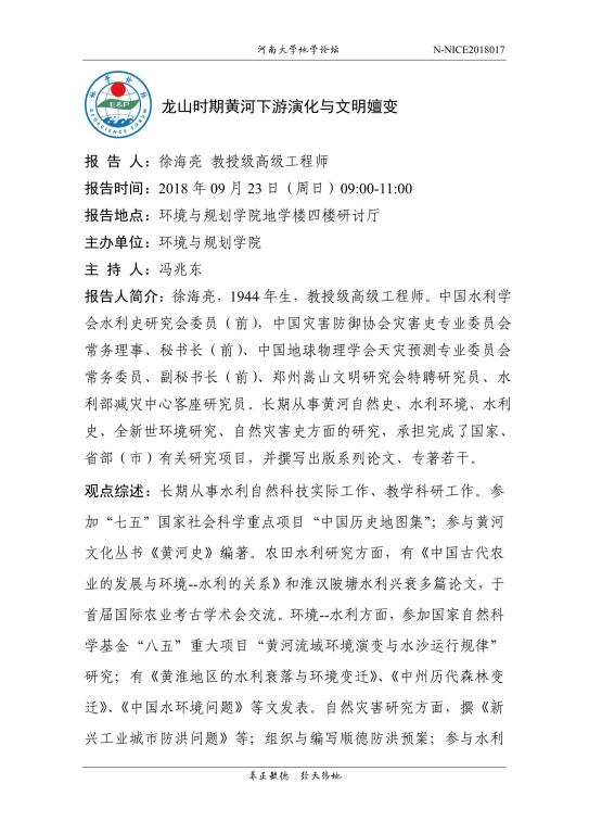 【地学论坛】徐海亮:龙山时期黄河下游演化与文明嬗变(时间:9.23(周日),9:00-11:00)