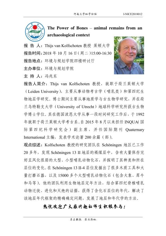 【地学论坛】Thijs van Kolfschoten: The Power of Bones–animal remains from an archaeological context(时间:10.16(周二),15:00-16:30, 地点调整至2楼阅览室)