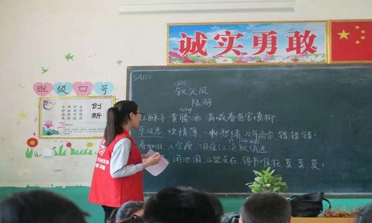 下午两点,志愿者们就抵达了目的地,简单了解了各个班级学习进展情况后,就来到各自所负责的教室,正式开始了支教活动。志愿者们首先对学生们进行了功课辅导,并对学生们提出的问题进行耐心细致的讲解,并通过趣味教学的方法,将语文、数学、地理小知识分享给学生们,以有奖问答的形式给学生们奖励,不仅调动了小朋友们上课的热情,还增进了师生之间的感情。另外,志愿者们还精心准备了各种形式多样新奇而富有蕴意的主题课堂,与孩子们一起唱歌,背诗,做游戏等。随着天色渐暗,支教活动也在小朋友们的依依不舍中落下了帷幕。