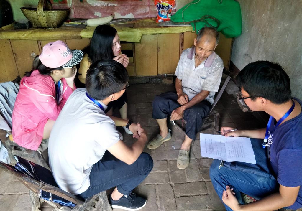 16、17日,在村干部和村民的积极配合下,调研团先后在车村镇下属的天桥沟村、铜河村、明白川村以及孙店村四个村庄进行了深入走访,以重点访谈和问卷调查的方式对相关扶贫产业进行考察。为了更深层次的了解车村镇的贫困情况及党和国家对贫困地区的扶贫力度,调研团深入群众,分析导致伏牛山区贫困现象的原因,并积极探索山区脱贫新模式。在对天桥沟村的调研活动中,调研团与河南省旅游局驻天桥沟村书记陈占元进行了访谈。在访谈中,调研团了解到了天桥沟村内的大致情况,包括村中贫困户的一些基本情况、当地的扶贫产业和扶贫措施等。此外,调研团以小组协作的方式对该村进行入户调研,对旅游扶贫效益作出相应评估,以便对天桥沟村的精准扶贫有一个更加清晰、深入的了解。