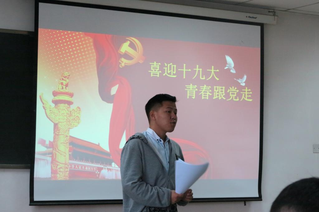 为深入贯彻习近平总书记系列重要讲话精神,迎接党的十九大胜利召开。10月11日,环境与规划学院研究生第二党支部在学院520教室举行“喜迎十九大,青春跟党走”主题党日活动,围绕《习近平的七年知青岁月》、《习近平讲故事》等开展学习展示、读书心得交流、党史党情知识竞赛等内容。活动由党支部书记汪博主持。