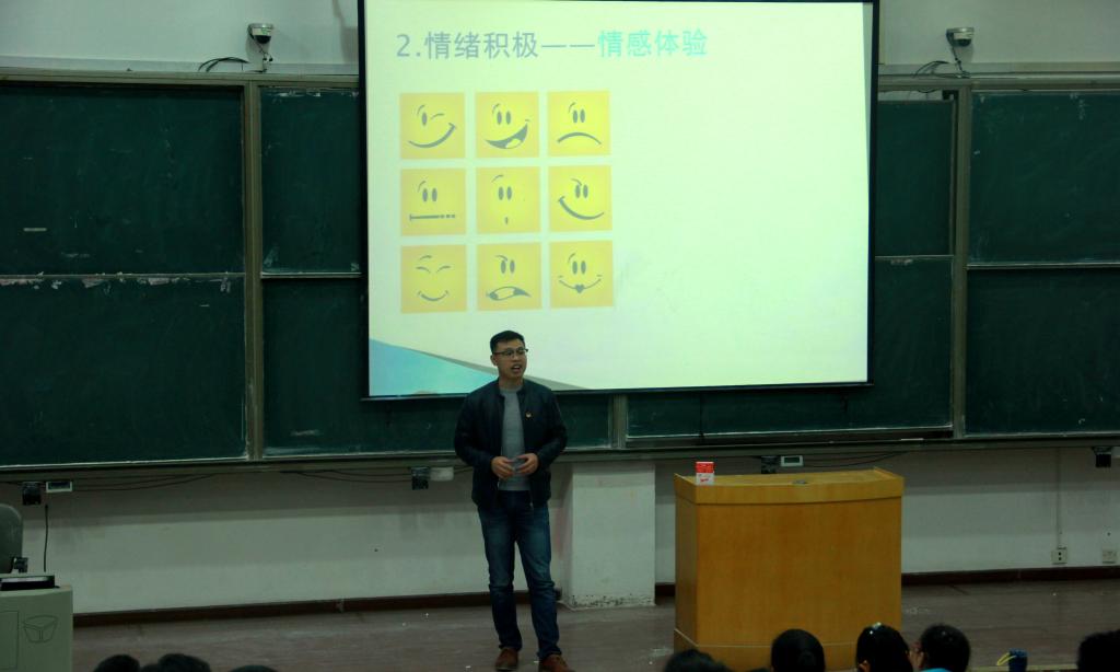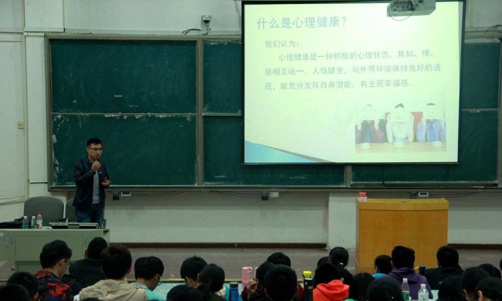 李燚老师向同学们介绍了什么是“健康”和“心理健康”,并且讲解了世界卫生组织关于健康的十条标准,从而帮助同学们深入了解大学生心理健康的必要性。随后,李燚老师借助PPT结合具体事例深入剖析了大学生心理健康的八个标准,让同学们能够更好地认识自己的心理状况。他着重诠释了心理健康的相对性、连续性以及动态性,并用幽默诙谐的语言为同学们阐述了造成心理疾病的因素,他引导同学们正确认识自己的心理问题,帮助大家解答了入学以来的心理困惑,并且消除了部分同学对未来四年学习生活的迷茫。