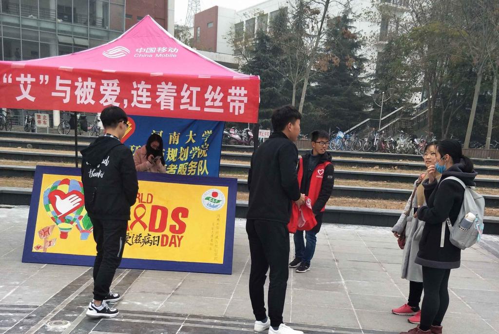 上午九点,青协成员在金明校区下沉广场摆出事先画好的展板,给同学们发放有关防治艾滋病的宣传资料。同时,值班人员还积极向同学们介绍与艾滋病相关的预防知识。活动末,校医院负责人员组织学生集体观看了艾滋病影像宣传片。