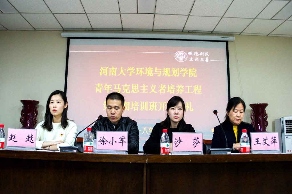 11月30日下午,环境与规划学院青年马克思主义者培养工程第三期培训班开班典礼在学院二楼报告厅举行。beat365 手机版官方网站团委书记沙莎、我院党委副书记徐小军、党委办公室主任王艾萍出席本次仪式。本次仪式由学院团委负责人、17级辅导员赵越主持,学院团干及入党积极分子等131人到场聆听。
