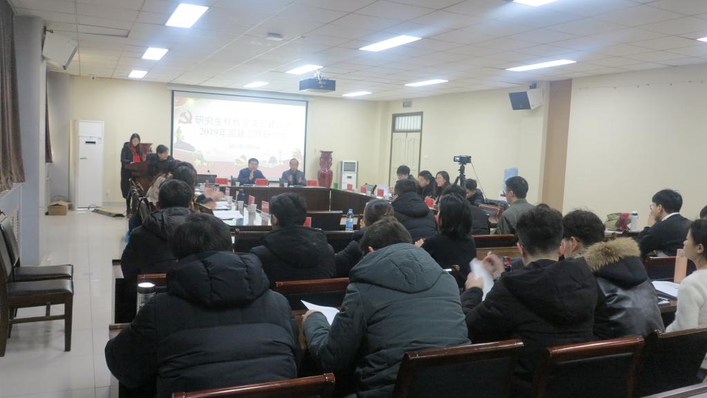 研究生辅导员、博士研究生党支部书记陈太政教授就2019年研究生党建及思想政治教育工作思路向大会作了报告。2019年研究生党建及思想政治教育按照“12311”模式思路开展工作:围绕一个中心,2019年研究生党支部紧紧围绕“研究生基层党建及思想政治教育探索创新”开展工作;突出两项重点任务,一是巩固马克思主义在意识形态的主导地位,二是加强思想政治引领,筑牢学生理想信念根基;搭建完善三个平台,要进一步配强研究生党支部,优化完善研究生会以及设立研究生党建及思想政治教育研究中心;强化一个抓手,以研究生样板党支部创建工作为抓手,开展探索创新,推动研究生党建工作高质量发展;达到一个目标,培养新时代德智体美劳全面发展的社会主义建设者和接班人。
