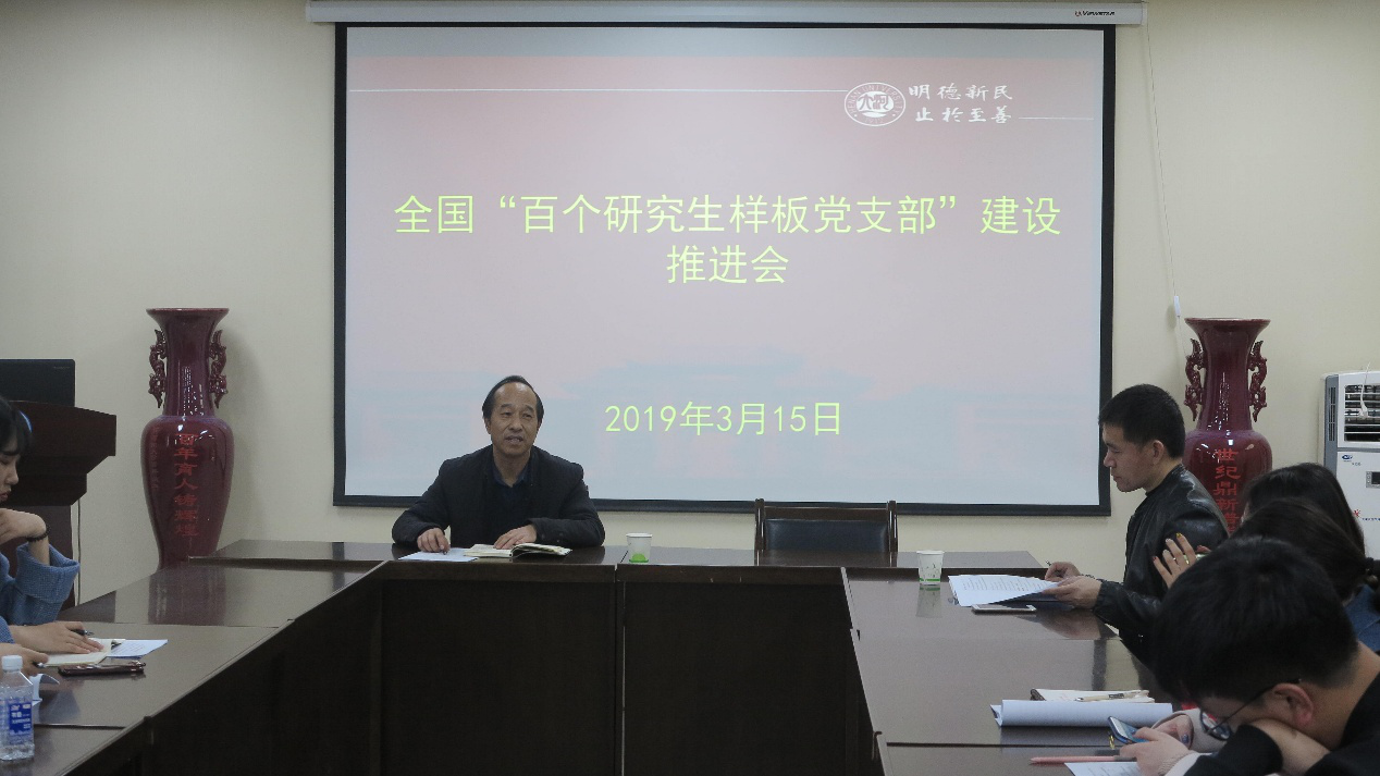 2019年3月15日下午,beat365 手机版官方网站环境与规划学院研究生四个党支部在学院二楼报告厅举行全国“百个研究生样板党支部”建设推进会,参加会议的有学院党委副书记徐小军、博士研究生党支部书记陈太政,研究生各党支部委员、党员及入党积极分子。会议围绕两项议题进行:研究生样板党支部建设和阶段成果凝炼。本次会议由学院团委副书记、研究生第一党支部书记魏建飞主持。