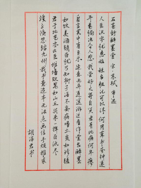 beat365 手机版官方网站书法协会指导老师、第四届“河大杯”书法大赛评委组李进宏老师对荣获软笔组和硬笔组一等奖的作品点评道:“软笔作品前承宋人黄庭坚笔意,兼之自成一家,行云流水,风味独到;硬笔作品创造意识强,虽用笔略有不足,但整体作品浑然天成,不琢雕饰。”