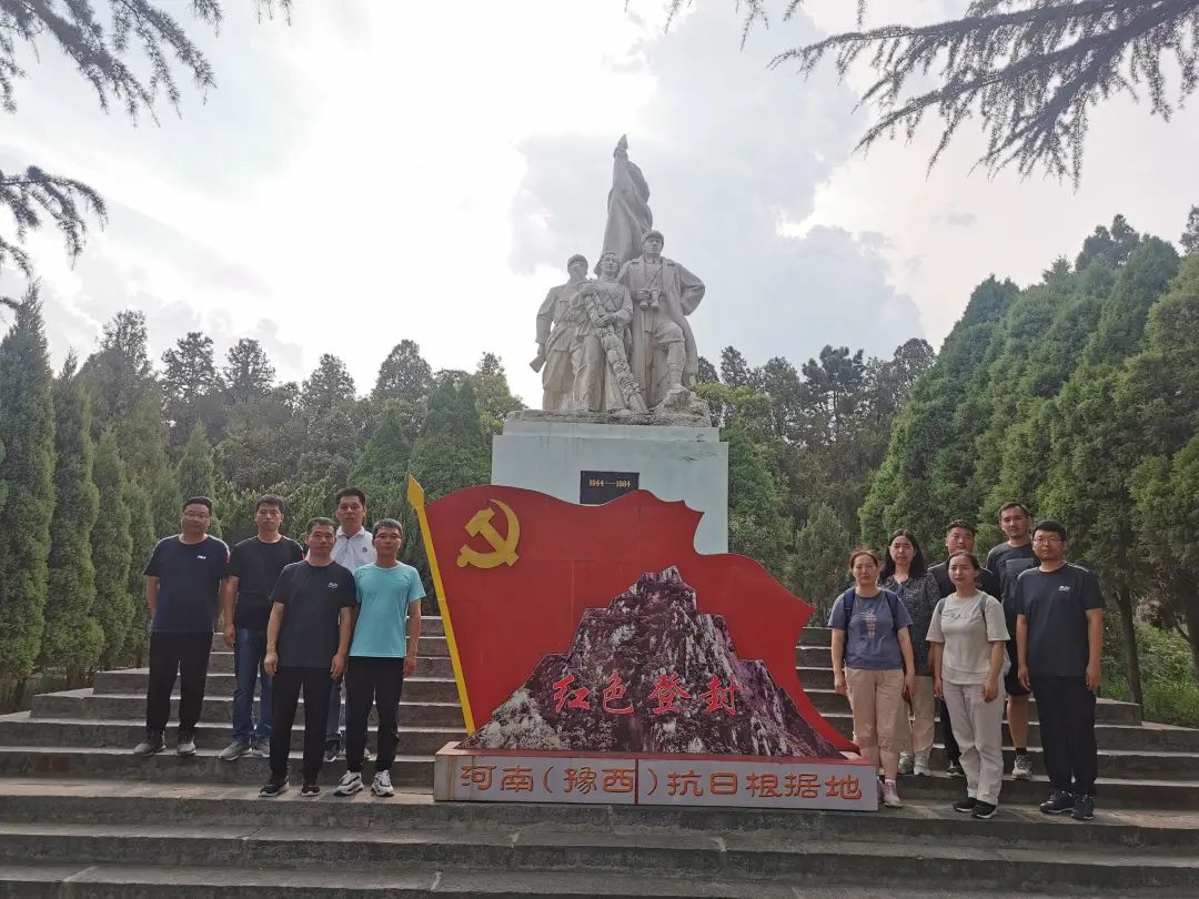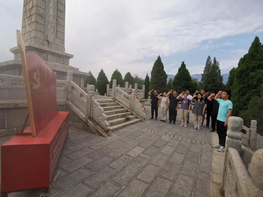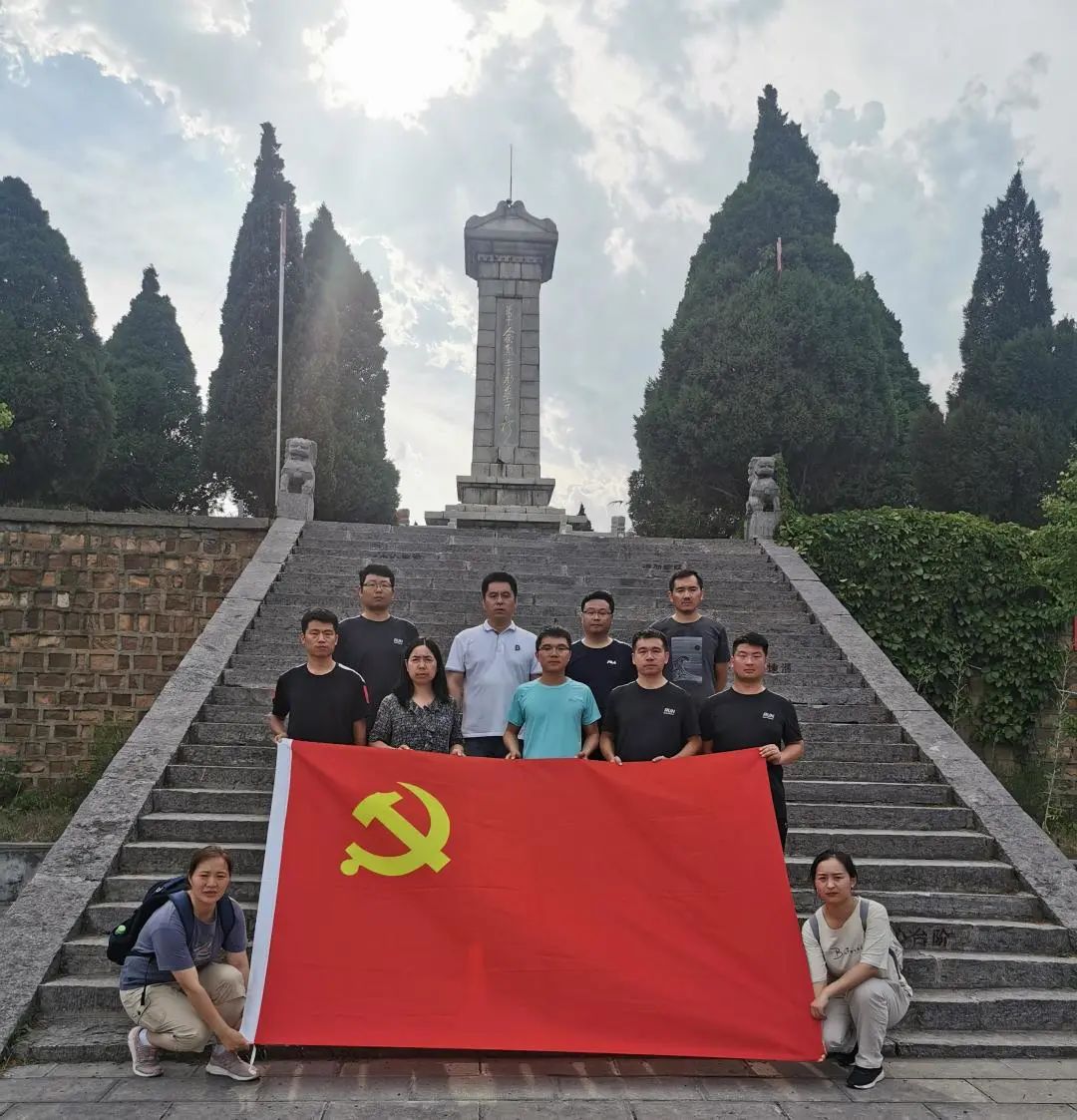 7月9日下午临时党支部全体党员到达纪念馆探访红色印迹。踏入纪念馆首先看到的是高3.6米的工农兵群体英雄塑像。在讲解员的讲解下,支部成员了解了群像的背景,感悟了工农兵的精神。然后来到了革命烈士纪念厅,党员们看到满墙的烈士照片都不禁感慨,如今的和平岁月是用无数革命烈士的鲜血换来的。党员们接着参观了皮定均将军和徐子荣政委的事迹陈列馆,聆听他们开辟豫西抗日根据地、解放嵩岳大地的故事,更加坚定了党员同志们传承革命先烈的红色基因的信念。紧接着,全体党员在革命英雄纪念碑前,庄严地向英雄先烈们三鞠躬以示敬意,还面向党旗重温了入党誓词。铮铮誓言正代表了不忘初心、牢记使命的郑重承诺。