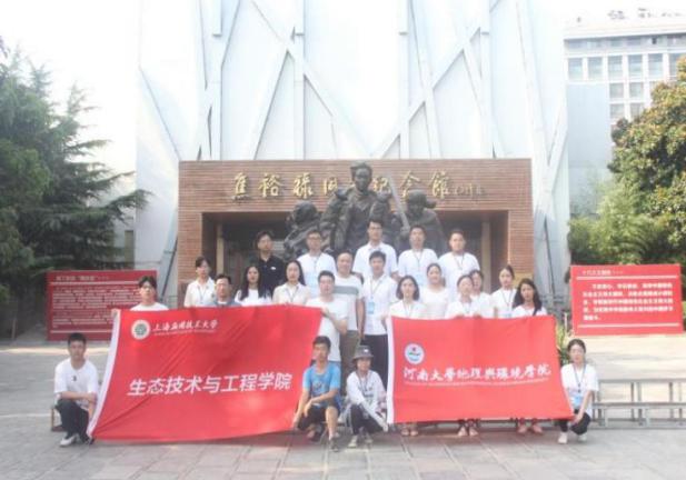 学史明理,学史增信,学史崇德,学史力行,为深入贯彻落实中共中央对开展“四史”宣传教育,探寻红色文化基因。7月14日下午,beat365 手机版官方网站beat365 手机版官方网站暑期“三下乡”校级重点社会实践调研团由临时党支部书记郑开元带队,赴兰考县焦裕禄爱国主义教育基地参观学习,途中巧遇上海应用技术大学生态技术与工程学院调研团队。为热烈庆祝中国共产党成立100周年,深入开展党史学习教育,重温党的光辉历史,不断激发全体党员学党史践使命的热情,两所高校团队临时决定开展“铭记红色历史,践行初心使命”校际特色主题党日活动。
